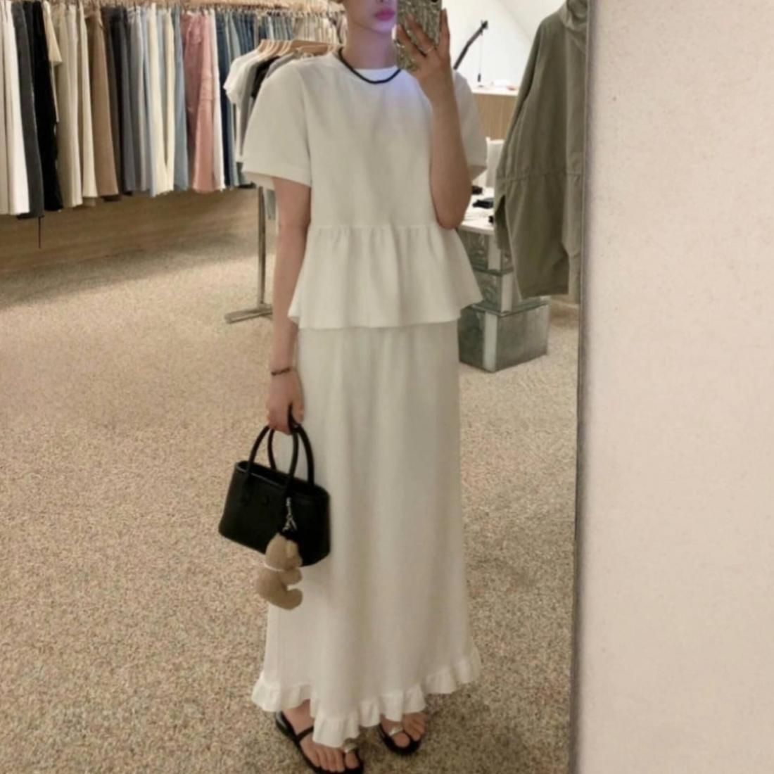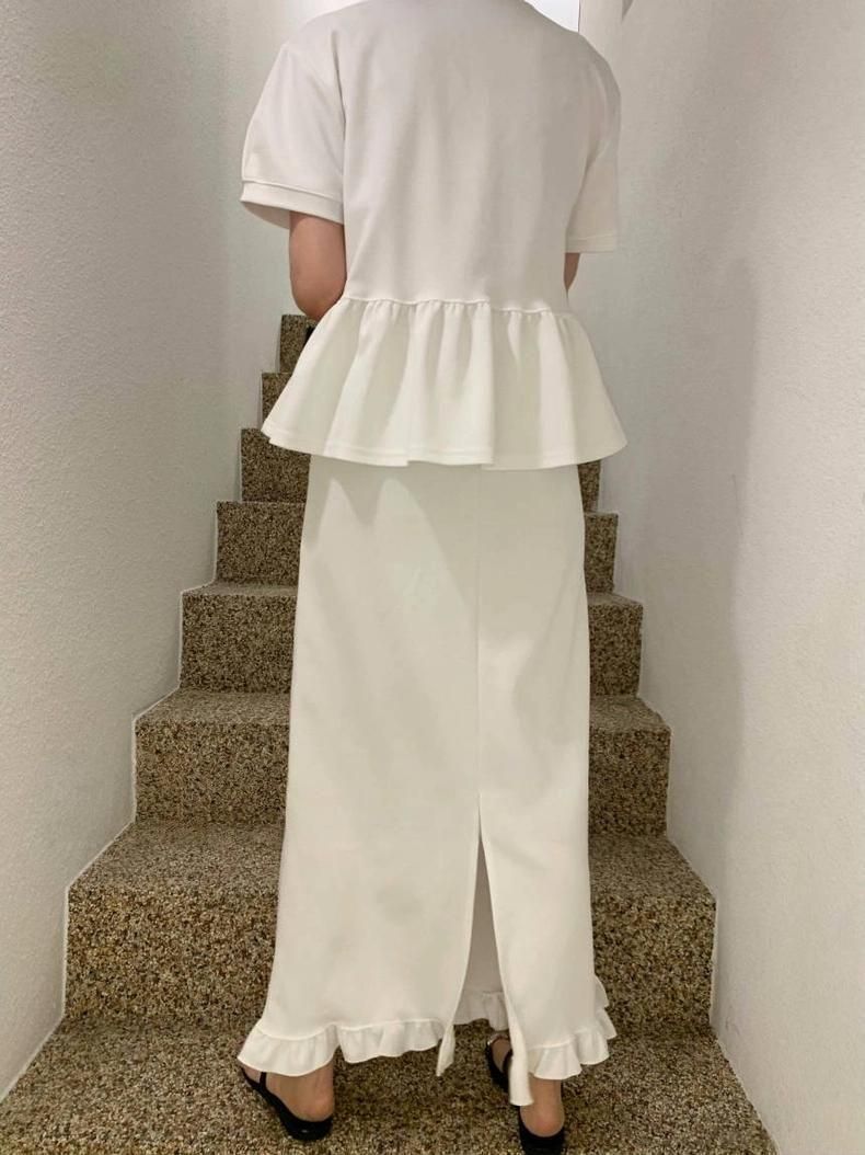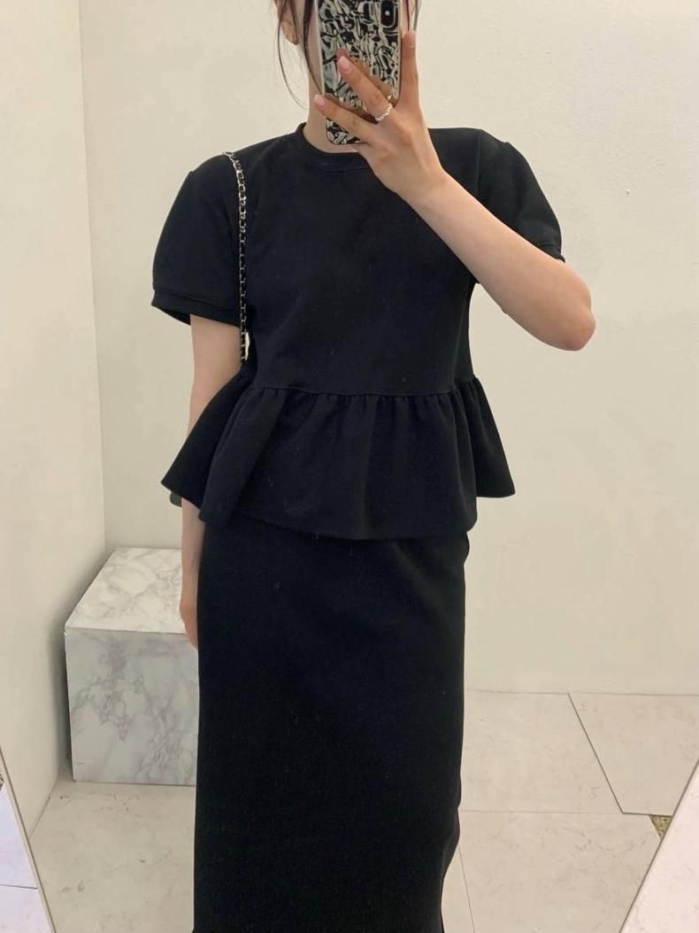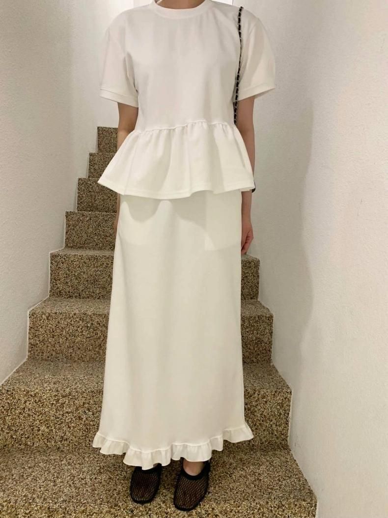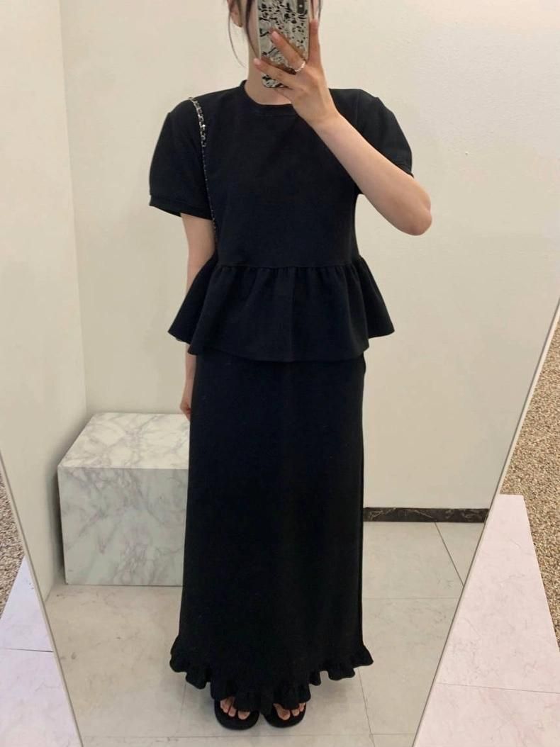 ペプラム×パフスリトップスとロングスカートのセットアップ
