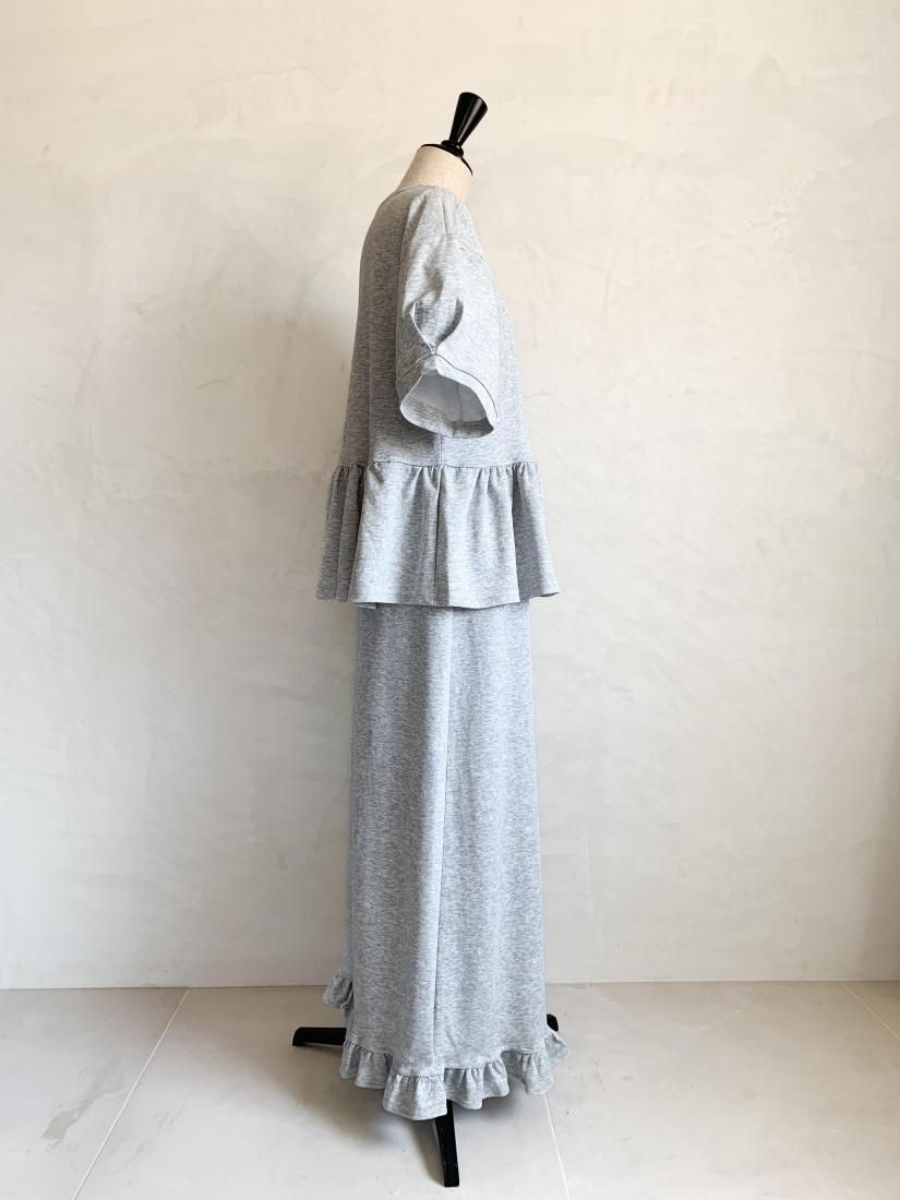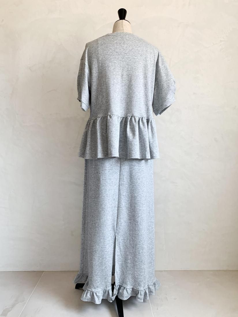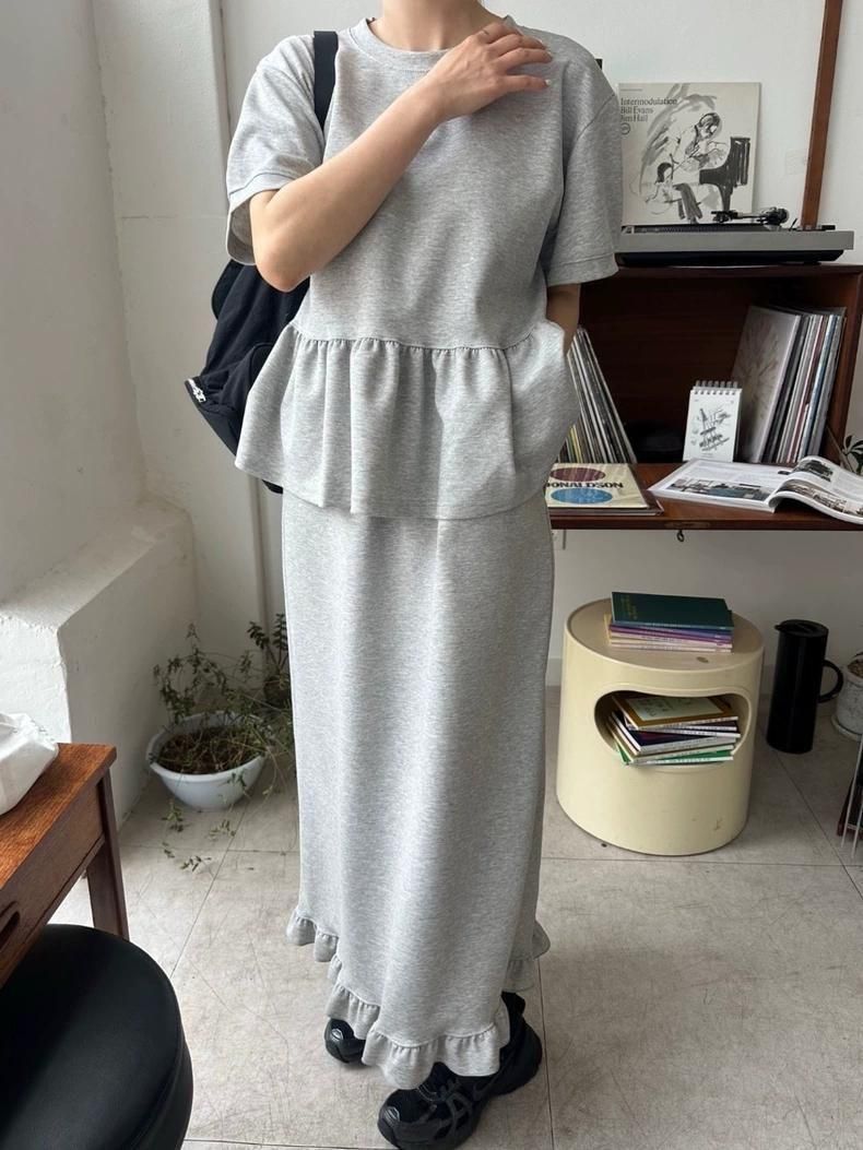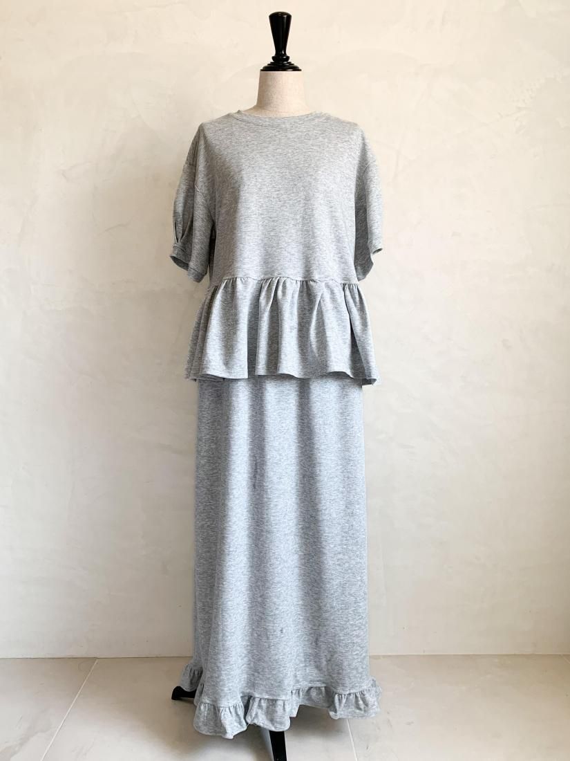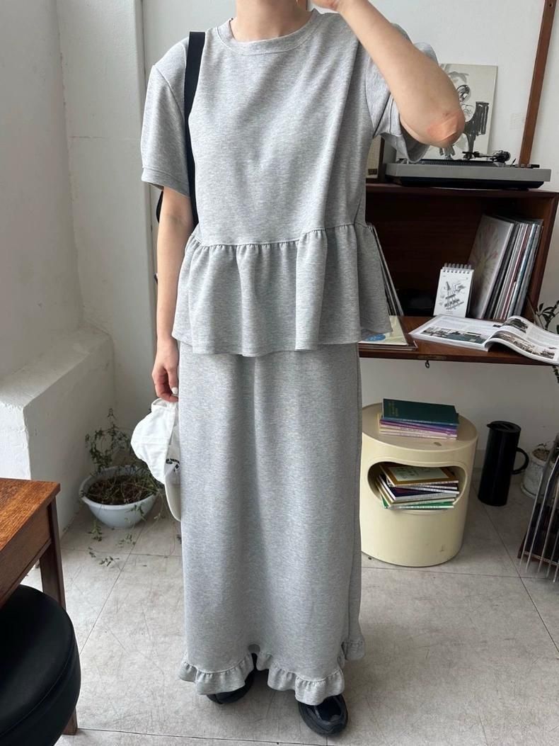 ペプラム×パフスリトップスとロングスカートのセットアップ