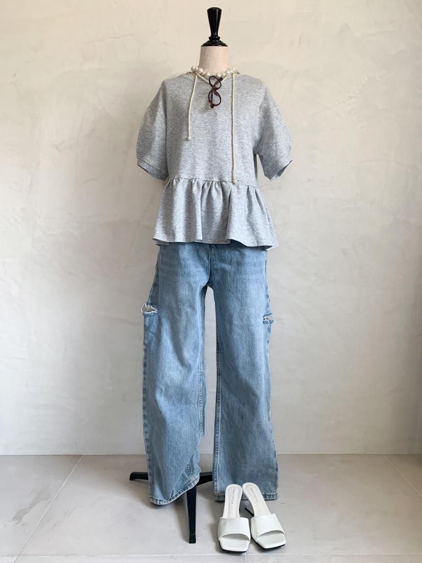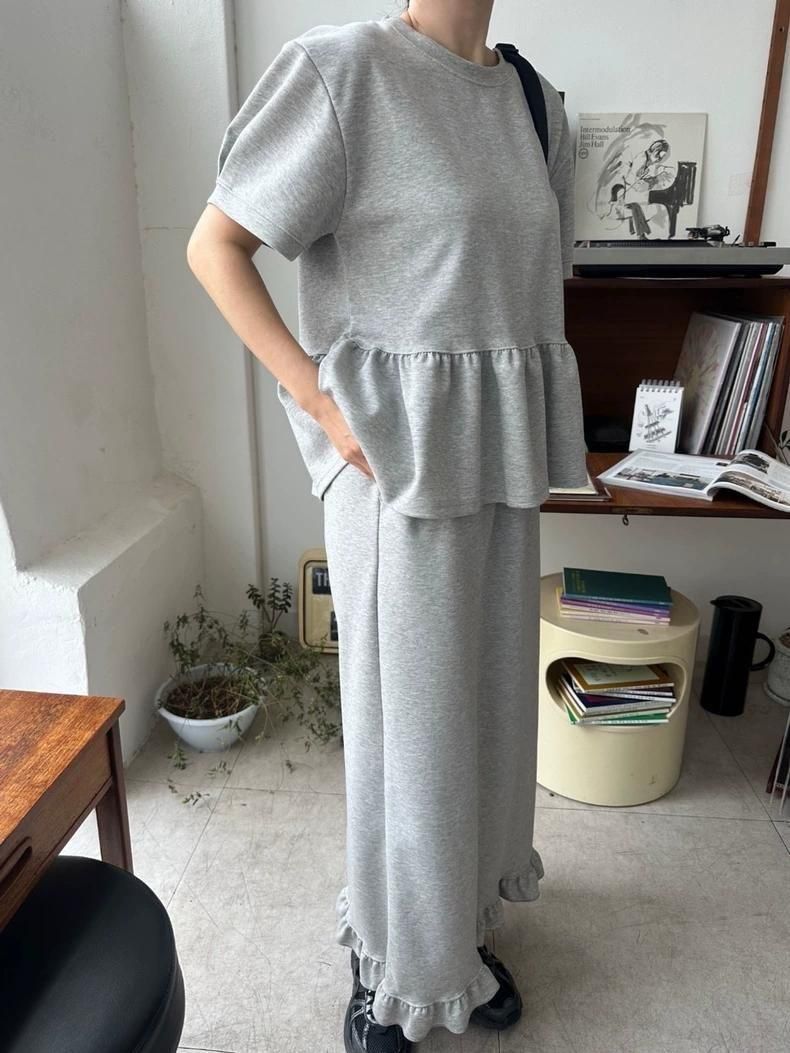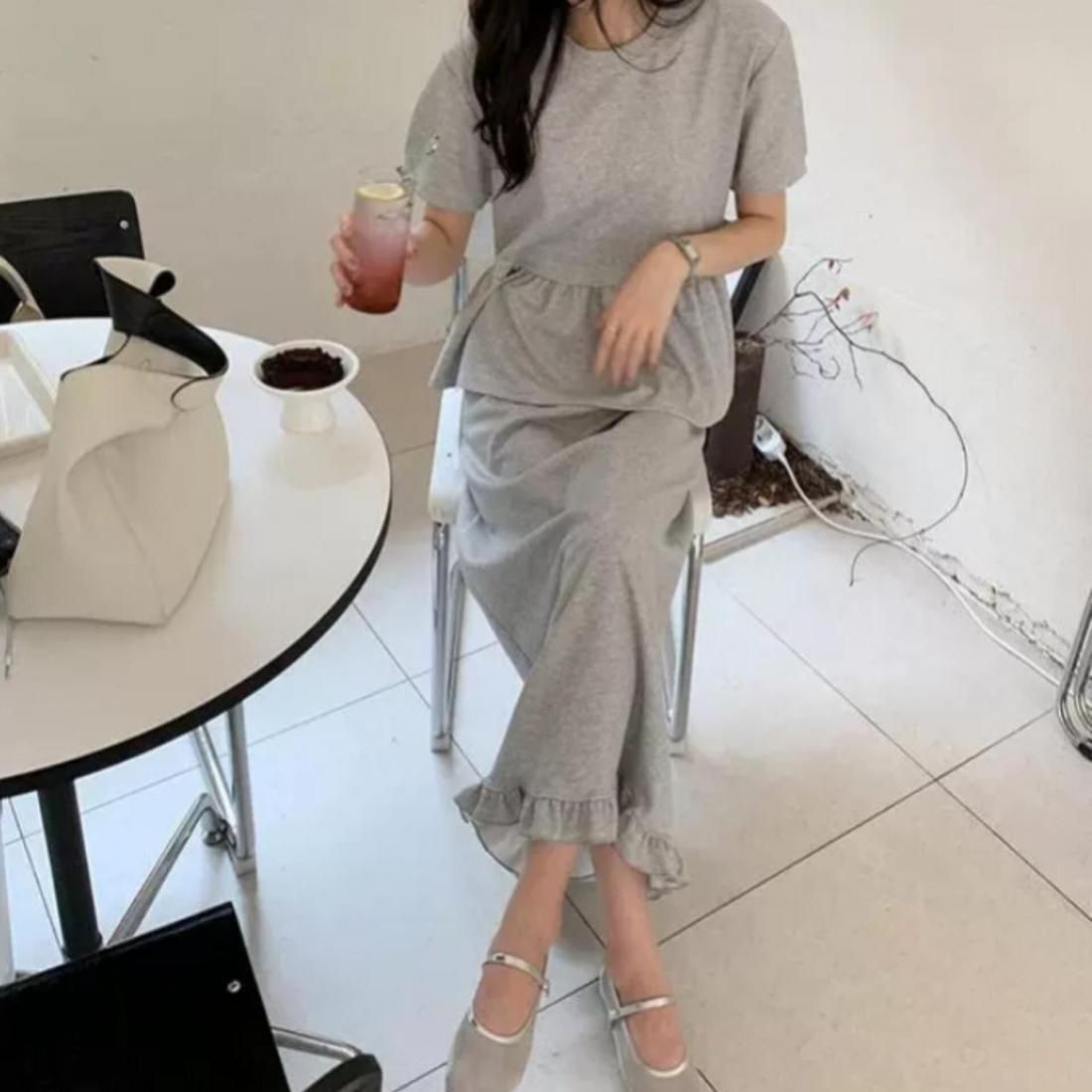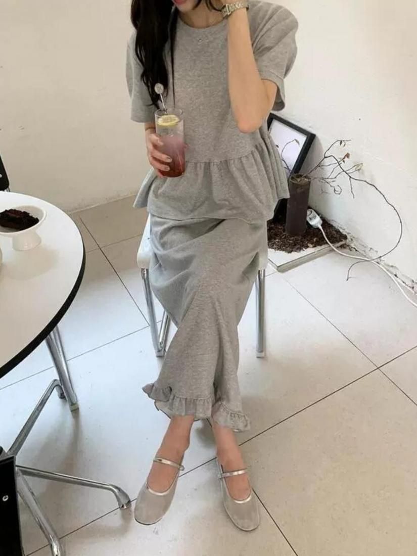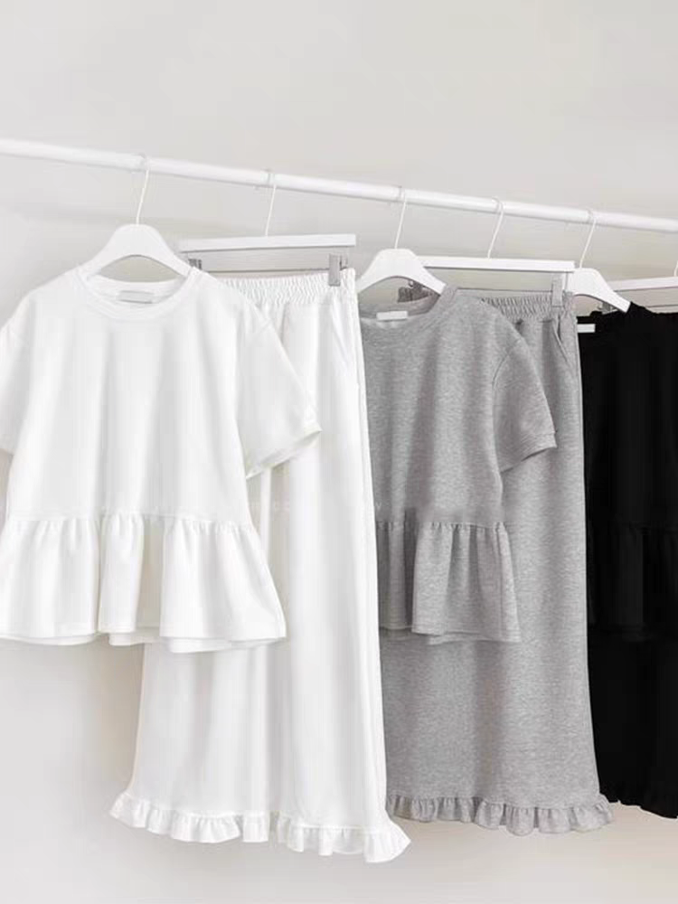 ペプラム×パフスリトップスとロングスカートのセットアップ