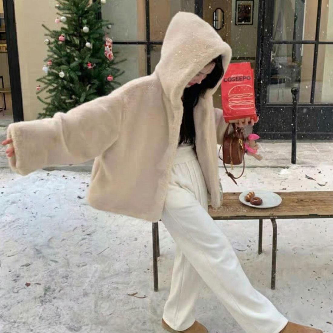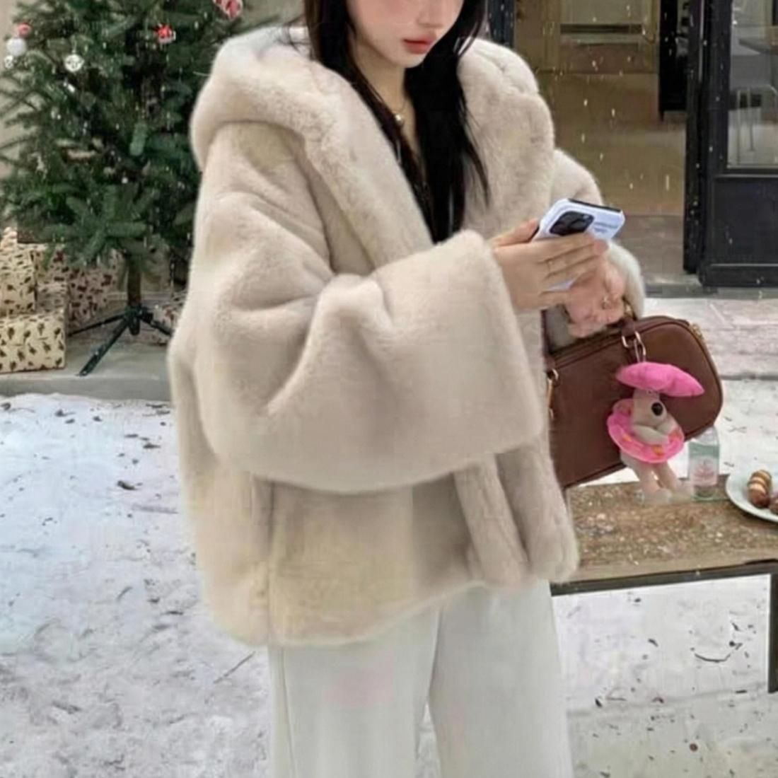 【早割12%OFF 12/22まで】Elegant Hooded Fur Coat