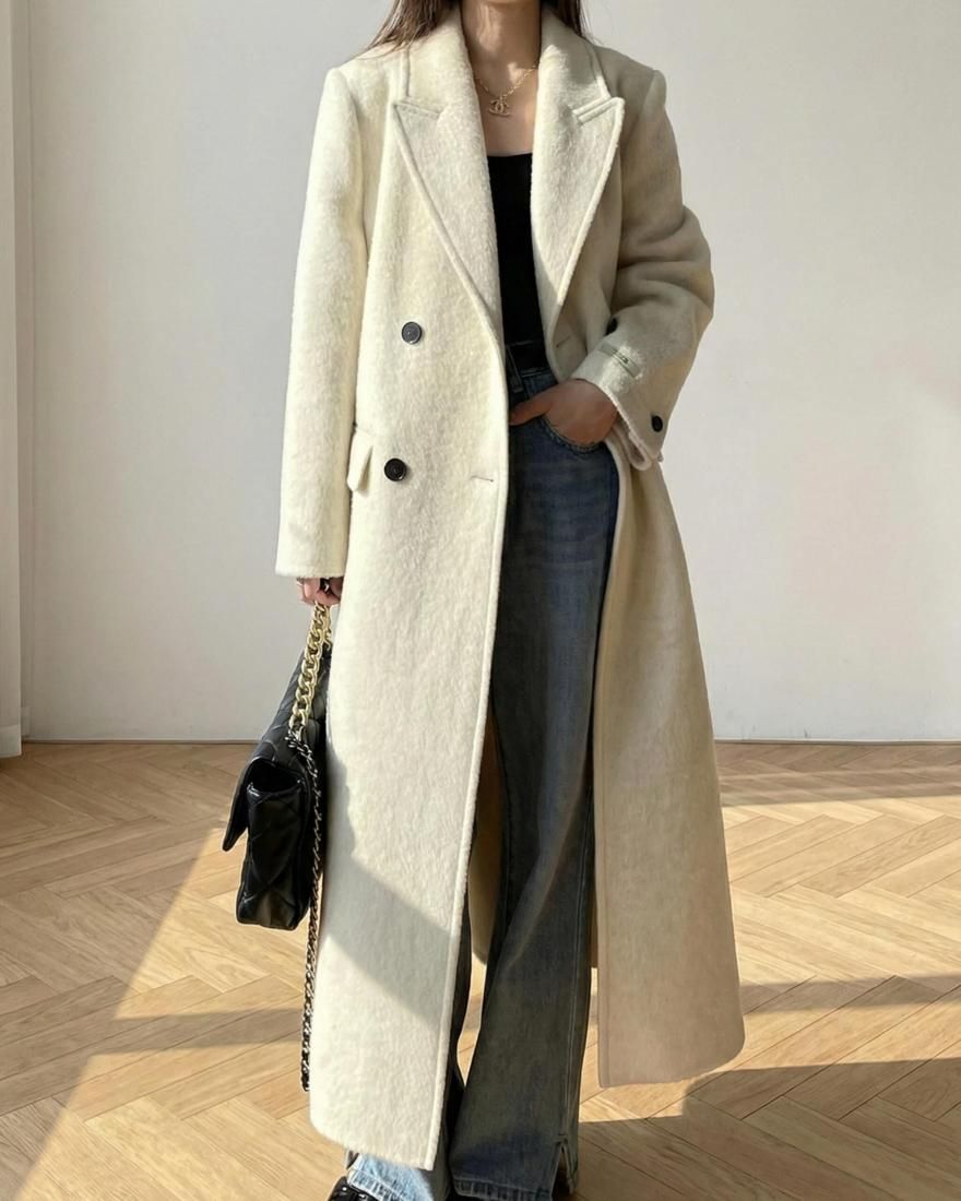 ロング丈は足元近くまで覆い、冬の防寒性と“きちんと感”を両立。
